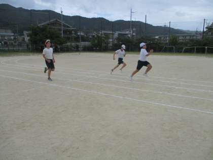 体育の時間に100m走の学習をしました。みんな真剣に走って,前回に走ったタイムより縮まって喜んでいました。