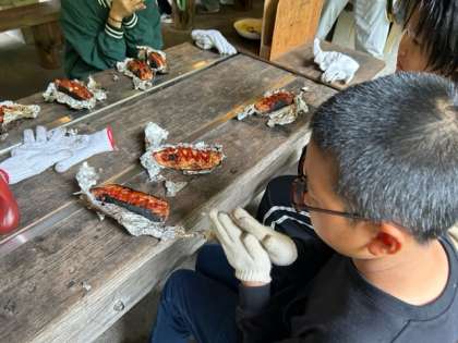 パックドックは少し焦げが強いところがあって、「苦い。」と言っている人もいましたが、野外炊事ならではの味でした。