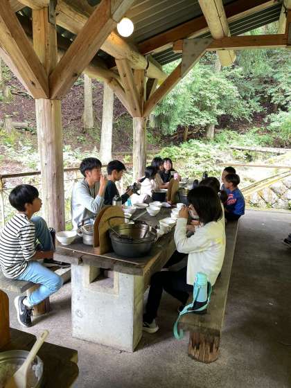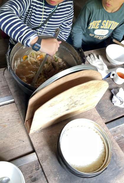 すき焼き風煮完成です!2回目の野外炊事は手際よく出来ました。美味しい!