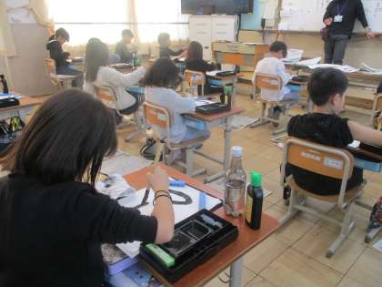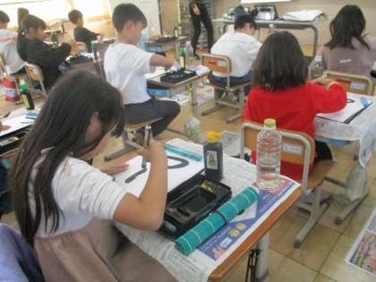 書道の時間では、「つり」を曲がりとはらいに気を付けて学習しました。まがりの筆の使い方を何度も練習していました。集中して学習することが出来ました。