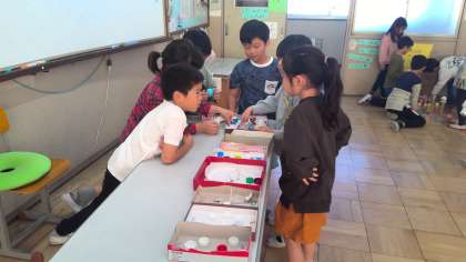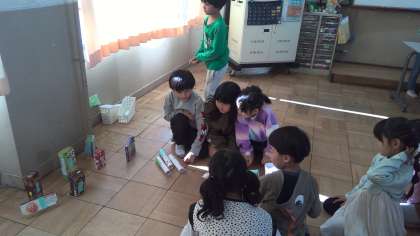 子どもたちは、保護者の方が楽しめる遊びを考え準備をしています。