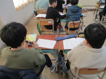 音楽の時間では、「5つの音でせんりつをつくろう」を学習しています。ペアになってリコーダーをふきながら、5つの音でせんりつをつくりました。良いせんりつのなるように何回も作り直している様子がありました。