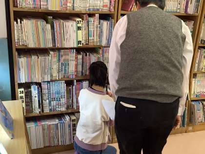 図書の谷口先生から図書館を使う時の約束や、本の貸出や返却の仕方について教えて頂きました。集中して話を聞いていました。