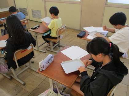 図工の時間では、コロコロガーレを作成しています。ビー玉がいろいろな道を通って転がる作品を作成しています。まずは、土台を作成しました。これからどんな作品が出来るか楽しいです。