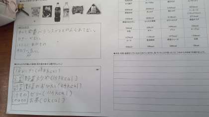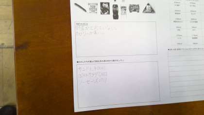 栄養教諭の先生から、「主食・主菜・副菜・汁物」をそろえるとバランスがとりやすいということを教えていただき、実際に自分で献立を考えることにチャレンジしました。「あっ、炭水化物ばっかりになった…」「野菜も入れないと…」などとつぶやきながら、献立を考えました。