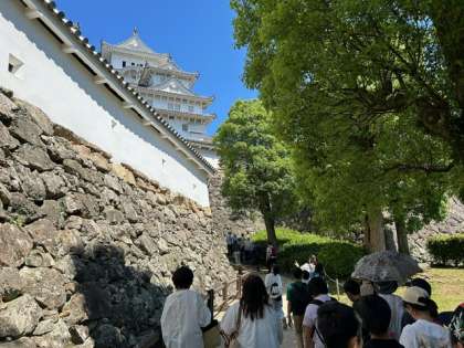 とても良いお天気の中、姫路城の見学を終えました。これから学校に帰ります。
