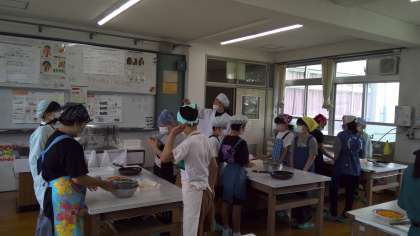 これまで、調理実習に向けて、作り方の手順を確かめたり、役割分担をしたりと準備を進めてきました。いよいよ本番!ということで、子どもたちは朝からとっても嬉しそう。家庭科の時間になると、「やったぁ!」という声が聞こえてきました。