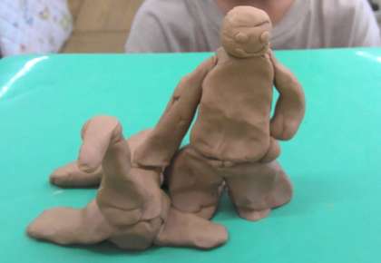 図画工作の時間に、粘土を使って