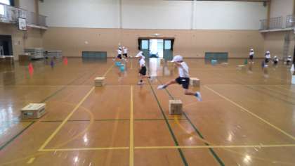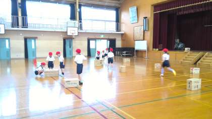 体育館で体育をしました。