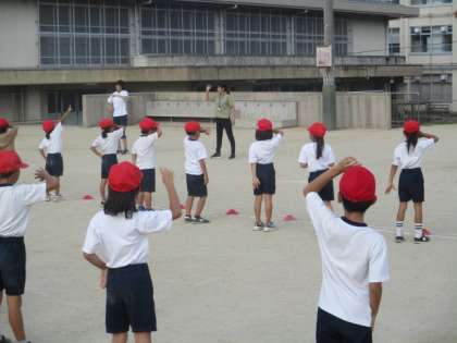 運動会に向けてがんばっています。これまで体育館や教室で練習してきて、今日は初めて外で練習しました。外でもしっかりと場所を考えて踊ることができました。とても楽しそうでした。
