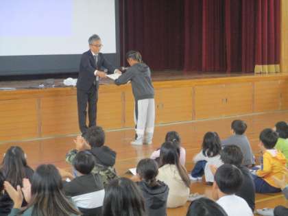 また、先日行われた陸上大会とふれあいプラザで好成績をおさめた子ども達への表彰もありました。