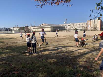 体育の学習で走りはばとびをしています。少しでも遠くに跳べるよう、助走や踏み切り、着地の仕方を考えながら練習していました。「もう少し体を前にしたらいいと思うで!」「踏み切る位置が後ろになってるわ!」など、子どもたち同士でアドバイスし合う姿もたくさん見られました。いい記録がでると嬉しいですね。