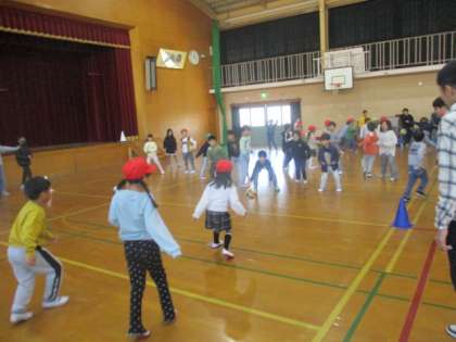 先日からお昼休みの時間にドッチボール大会が行われています。低学年は転がしドッチボールです。1年生は2年生と対戦することがあって、ドキドキしていました。終わった後は、勝っても負けてもみんな笑顔でした。