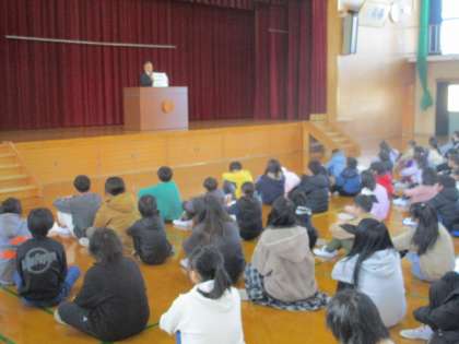 始業式では、残り少ない今年度を学校目標をめあてに進めるようお話がありました。