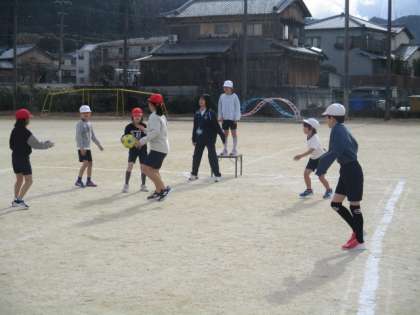 パスゲームの学習では、パスをつないでゴールをねらうので、上手くパスを回すために、チームでよく話し合って作戦を立てることが出来ました。また、大きな声でよびかけるなど、どのチームも協力して学習を進めることができました。