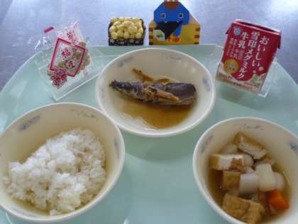 1月31日の献立は、「ごはん・牛乳・いわしのしょうが煮・関東煮・いり豆」でした。