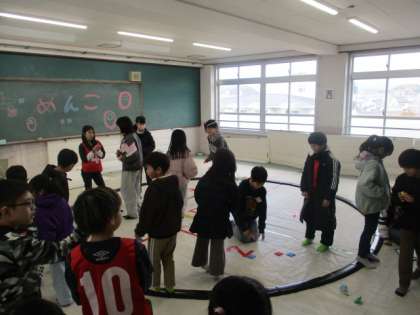フレンズゲームラリーが行われました。6年生や育友会、地域の方が考えたゲームをたてわりグループで回りました。それぞれのゲームのブースでは、歓声があがり、どのグループも楽しむことができました。