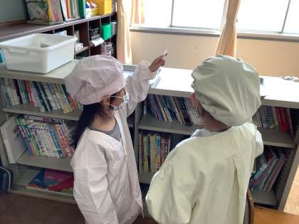 給食当番も毎日全員で行っているひまわり学級。1年生の今日のお仕事は、ストローを全員のお盆に配ること。一緒にやってくれた4年生のおねえさん。指導者が何も言わないのに、つながっているストローを1つずつに分け、やさしく渡してあげていました。1年生が配るお盆を迷ったときは、指差しして教えてあげていました。無事に1本ずつお盆に配ることができました。