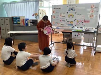 春の身体計測の前に、養護教諭からミニ学習を受けました。健康なくらしの合言葉「あ・は・は・は・は」や、成長には睡眠が大切だという話でした。