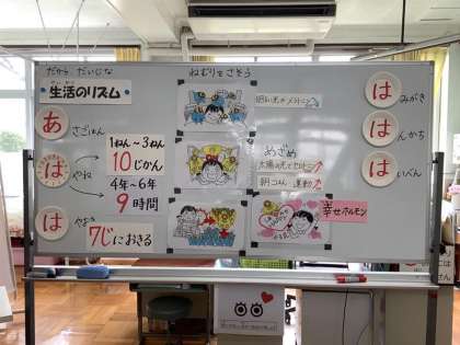 みんなしっかり聞いていました。夜寝るのが遅くなってしまう人は、寝る時刻を守って、早く寝るようにして、ますます元気に大きくなってほしいと思いました。