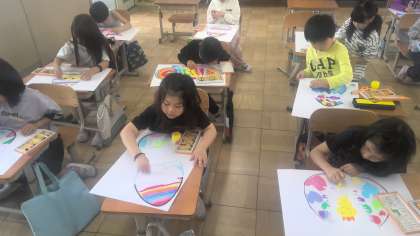 自分でふしぎなたまごから、どんなものが生まれるのかを想像して描きました。虹・虫・ペガサスなどいろいろなものが生まれてきた絵になりました。
