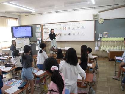 英語の時間では、学校での好きな遊びを英語で伝える学習をしました。いつも遊びを友達に英語で伝えることが出来るようになりました。4年生で一番人気の遊びも調べることが出来ました。