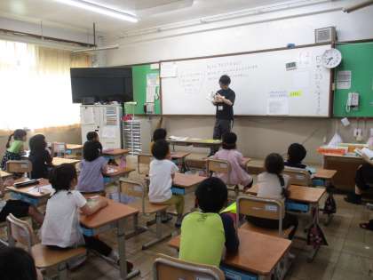 いつもは学校が始まり10分間は、朝の「読書タイム」です。自分の好きな本を選んで静かに、集中して読んでいます。今日は、月に1回の「読み聞かせ」の日です。他の学年の先生が本の読み聞かせをしてくれる日です。みんな喜んで聞いていました。来月も楽しみにしていました。
