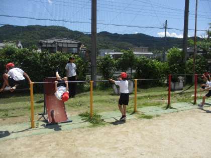 体育の時間では、自分達で今日のめあてを決めて鉄棒運動をしました。今できる技をさらに上手にできるように練習したり、出来ない技に挑戦したりしました。出来ない技に何度も挑戦して出来た時は、とてもうれしそうにしていました。
