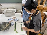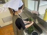 家庭科の調理実習では、班で役割を分担し、ほうれん草をおいしく調理することができました。