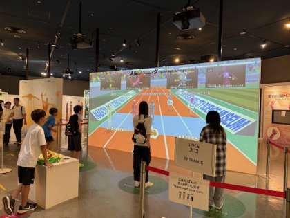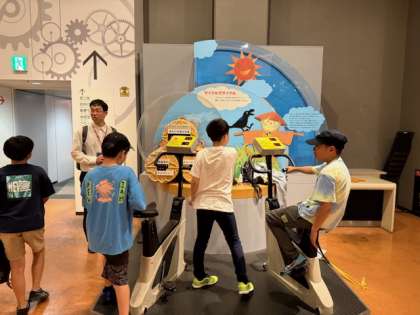 科学館でみんな熱心に実験しています。
