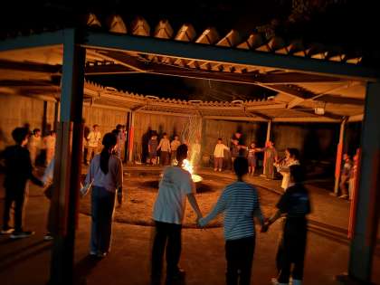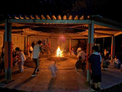 二日目夜はキャンプファイヤーです。歌って踊ってゲームして大いに盛り上がりました。