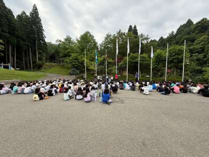三日目になりました。朝のつどいでは、他の小学校と一緒に学校紹介をしました。天気は晴れで朝はとても涼しいです。