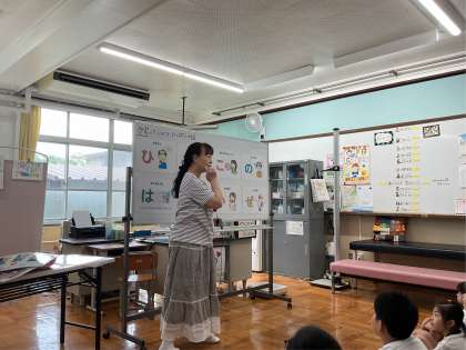今日の身体計測で、養護の先生に「かむっていいこといっぱいの話」をして頂きました。昔の人と今の人のかむ回数がかなり違うことなどを教えていただき真剣に話を聞いていました。