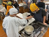 家庭科の学習でみそ汁を作りました。「大根はもう少し薄く!」「出汁のいい匂いがしてきた!」「火加減はどうかな」など、グループで話し合いながらおいしいみそ汁を作ることができました。来週はご飯に挑戦です!