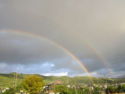 珍しい二重の虹が出ていました。児童たちも珍しい虹を見て喜んでいました。