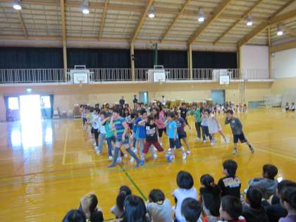 1年生を迎える会をしました。各学年工夫された出し物で1年生は楽しく見ていました。最後は1年生が春日野小学校の校歌を歌いました。