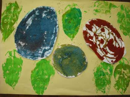 色砂作りの活動にも葉のスタンプの活動にも子どもたちは意欲的に楽しみながら取り組むことができました。