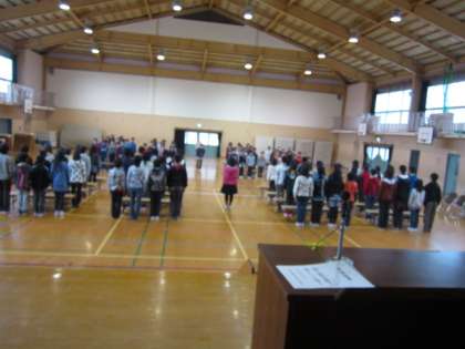 5年生と6年生が卒業式の練習をしています。