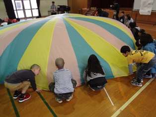 パラバルーンは,みんなで協力して,揺らしたりふくらませたりして楽しみました。