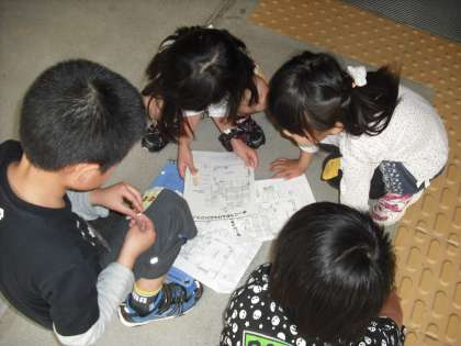 行く先々でクイズを出してもらったり、シールをはってもらったり。