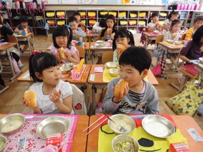 毎日の給食にも少しずつ慣れ、自分たちで準備もしっかりできるようになってきました。