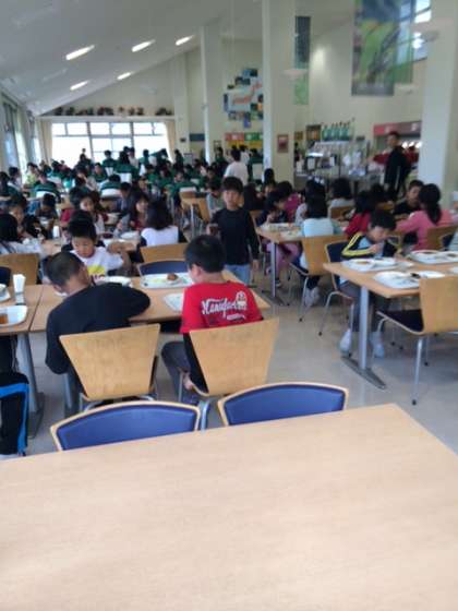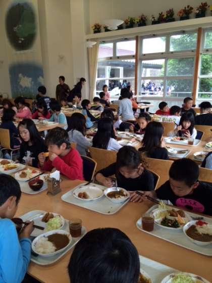今日のメニューは,チキンカレー・ミンチカツ・みそ味ソーメン等です。