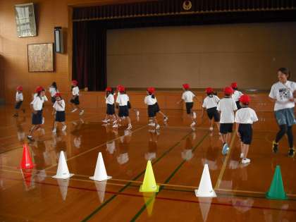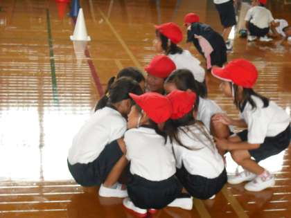 表現運動として、みんなで「むしになって」体を動かす勉強をしています。