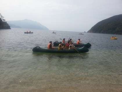 水泳・ボート・スノーケリングの中から,班で選んで挑戦します。