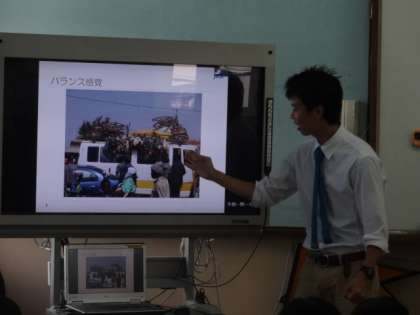 青年海外協力隊員として2年間、ブルキナファソにて環境教育のボランティアをしてこられた西出直哉さんに、協力隊員の仕事や、海外で生活して感じたことなどを子どもたちにお話ししていただきました。世界にはみんなの知らないことがまだまだたくさんあります。将来自分の目でいろんなものを見て、いろんなことを感じてほしいと思います。