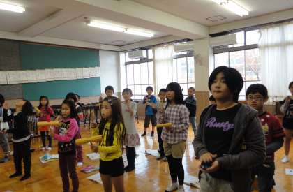 この曲に合わせて自分たちでリズムを作り,みんなで発表し合いました。