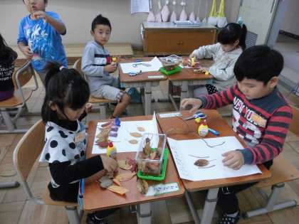 季節はすっかり秋も深まり、学校ではきれいな落ち葉やどんぐりをたくさん見つけることができます。