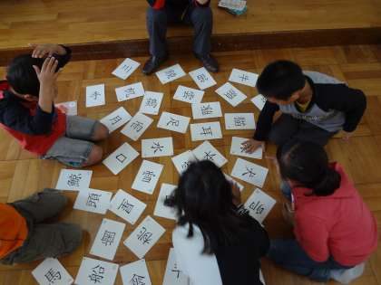 国語の学習で漢字かるたをしています。「鯨」「苺」など書くのは難しい漢字ですが,読むことができるように練習しています。ひとりでイラストをもとに漢字を覚える学習をしたり,みんなでかるたをしたり・・・。
