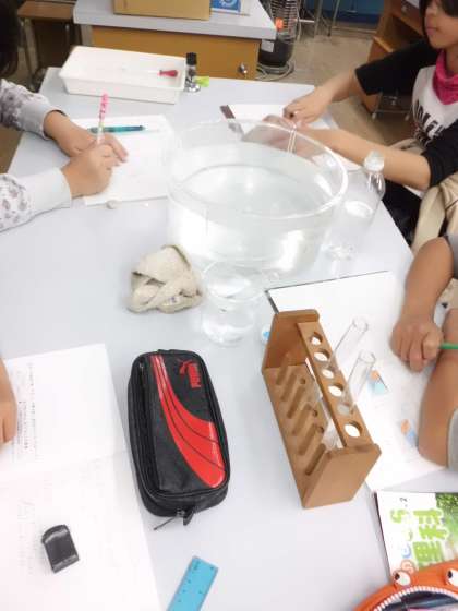 ということで,二酸化炭素が水に溶けているかどうかを調べる方法として,石灰水を入れてみることにしました。