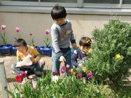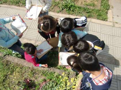 2年生のみんなが,学校の中で「はるみつけ」をしました。さくらの花やたんぽぽ,チョウチョウやダンゴムシなど,いろいろな草花や虫をみつけていましたよ。見つけたことや気づいたことを,「みつけたよカード」に絵と文でかきました。学校の運動場や中庭といった身近なところでも,春のおとずれをたくさん感じることができました。
